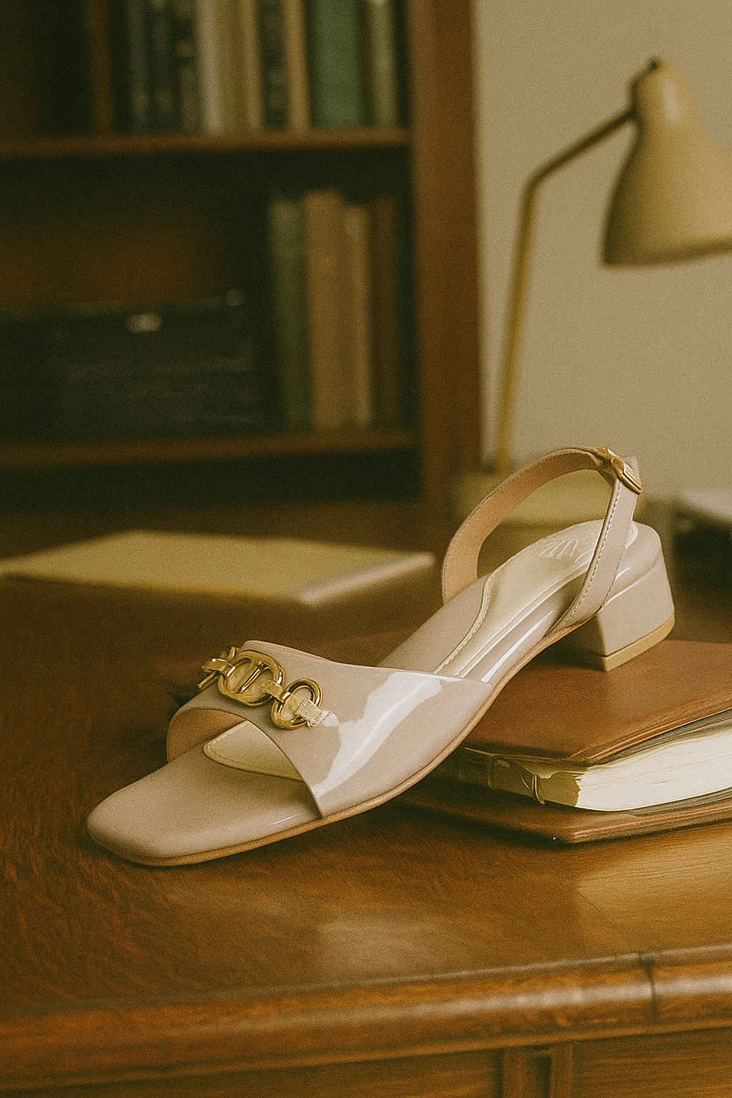 Made using a glossy Peachy Nude Patent Faux Leather, this style is designed to move with you — from commute to conference room to dinners. A simple 1-inch heel offers just the right lift, while the metallic embellishment detailing adds a quiet statement. With in-built arch support and high-density cushioning, it’s engineered for all-day wear without compromising on style. Consider this your go-to for power dressing when you don't want to wear heels.