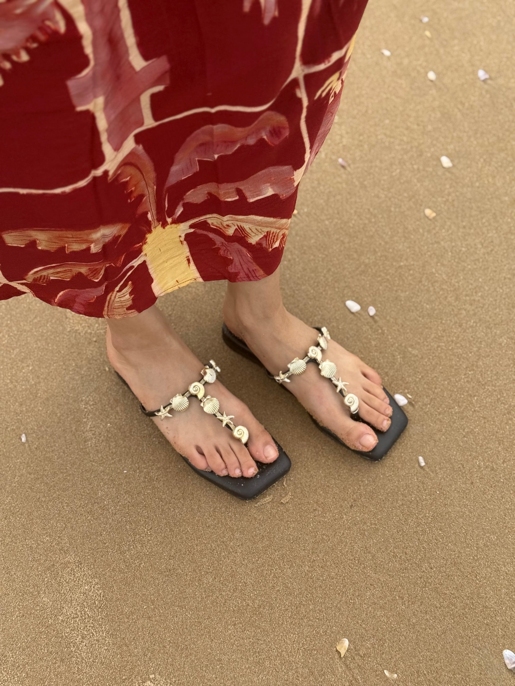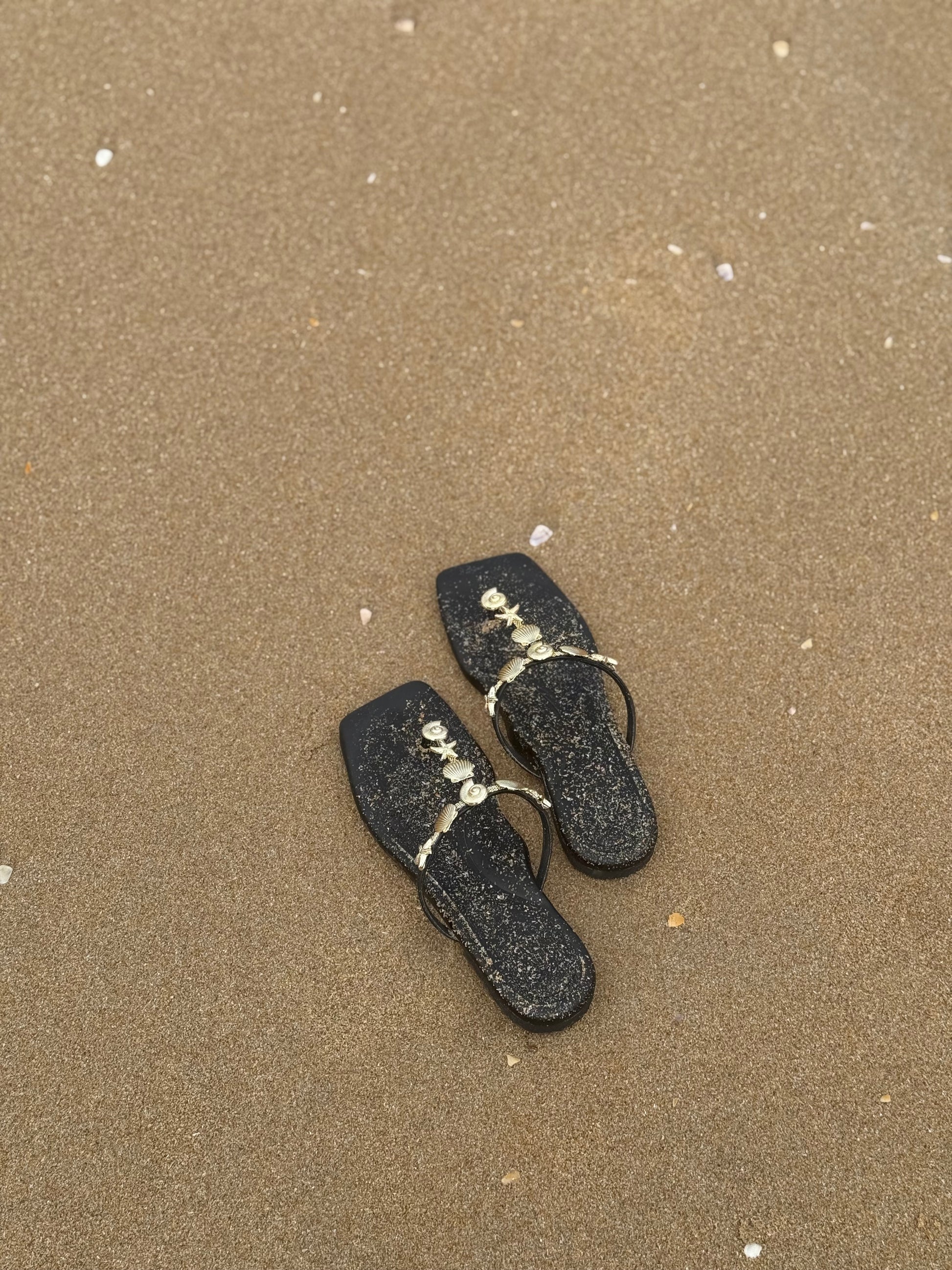 Perfect for a trip to the tropics, the She Sells Seashells Sandals feature an anti-tarnish metallic embellishments adorning the minimalist T-strap profile. Easy to slip on and walk around thanks to our padded arch insoles.